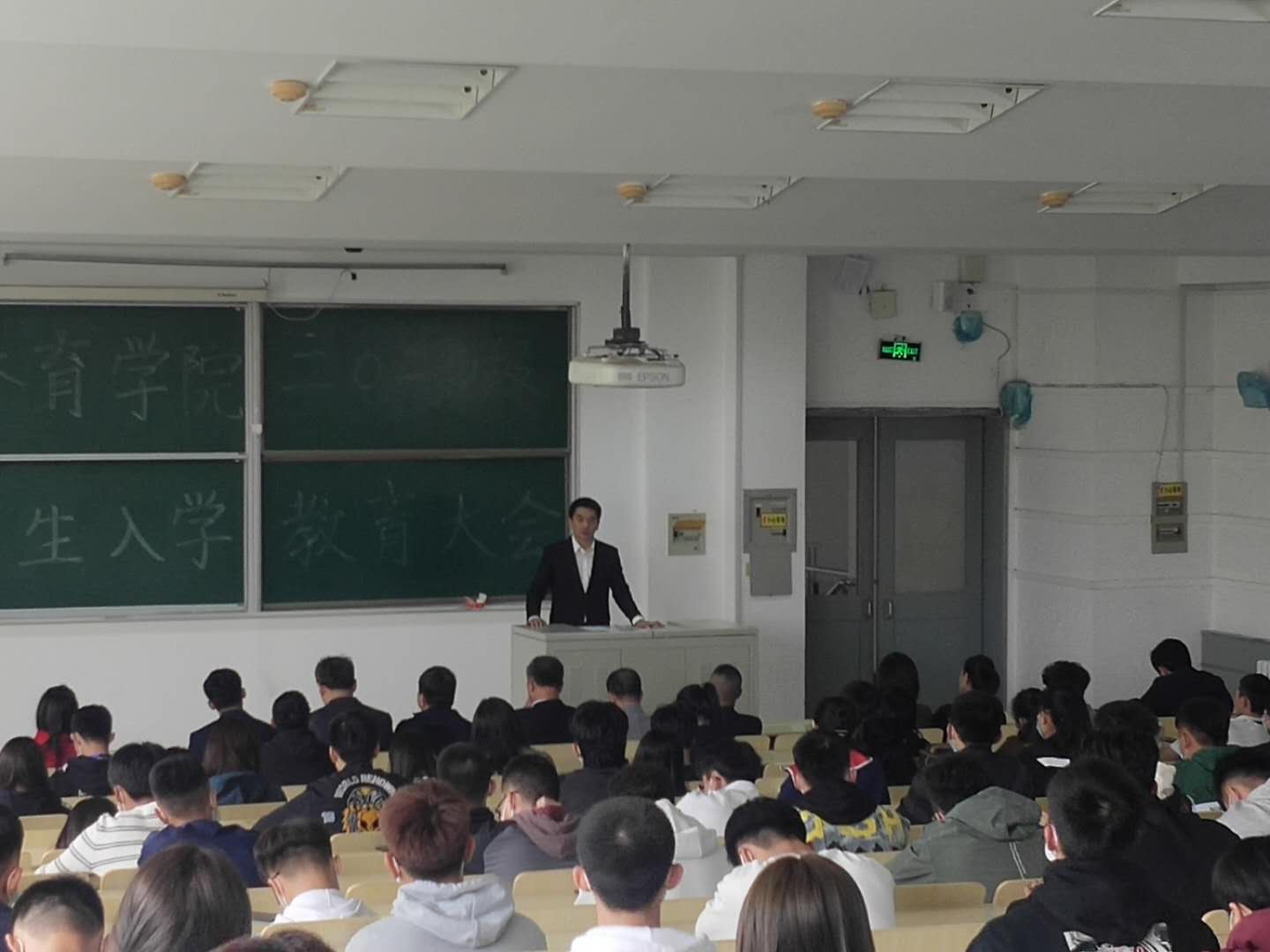 研究生新生在逸夫楼十三阶,召开2020级新生入学教育大会。学院严格按照防疫工作要求,组织各班级同学佩戴口罩在会场间隔就座。本次新生教育入学大会的内容包括爱国主义教育、爱校荣校教育、学风教育、学术规范教育。参加本次大会的领导有党委书记逄锦彩老师、院长裘鹏老师、副院长兼副书记田进老师、副院长刁振东老师、副院长佟强老师、副院长王祥全老师、研究生办公室主任赵扬老师、理论教研室主任郭玉莲老师、王宁老师、齐苗苗老师、裴晶晶老师。