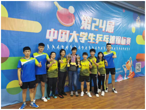 在超级组的比赛中由今年在第35届泛波罗的海大学生运动会获得女团冠军的三名同学参赛,通过几天的紧张激烈的比赛,三名同学不畏困难、一往无前,发挥出了较高竞技水平与顽强拼搏的精神,从众多高校队伍中脱颖而出,斩获女团冠军、女单第三名、女双第五名的好成绩。
