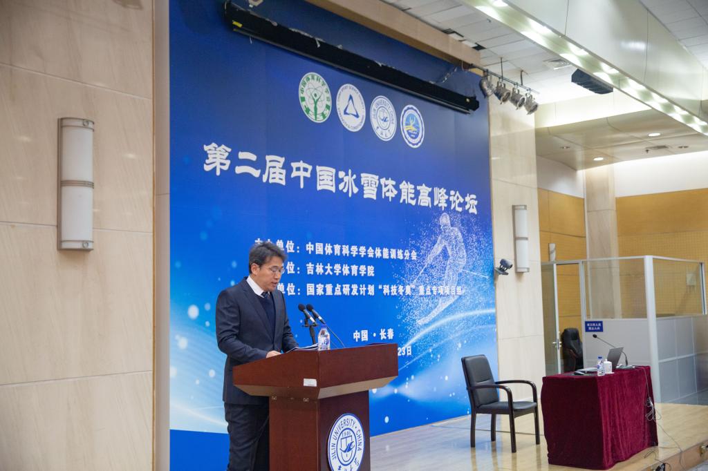 的冰雪项目及学院的整体发展概况。他表示,今后学院将加强冰雪项目建设,以体育文化建设为引领,通过加强大众体育、阳光体育、体育健康、体育融合、体育思政等方面的建设来推动学院体育学科的发展。他希望通过本次论坛,对营造学院学术氛围,加强院校交流合作,助推冰雪体能训练科学化发展起到积极的促进作用。