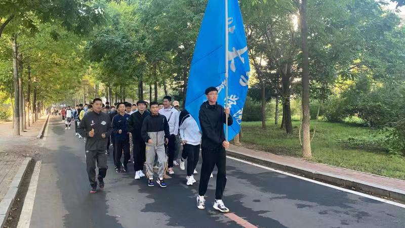 2020级于体育馆阶梯处准时集合完毕,由于田径场维修,地点初步定于体育馆门前集合,由学生干部严格按照标准执行考勤工作后带领同学进行早操。辅导员王祎老师带领大家按照预定路线慢跑至体育馆北侧广场练习广播体操,在跑步中,体育委员带领班级同学喊口号。各个班级踏着整齐的步伐,喊着响亮的口号。在练习体操中动作整齐。充满朝气与活力,成为一道亮丽的风景线。辅导员陪伴同学一起进行活动并示范练习。待早操结束后辅导员作出总结,随后班委整队带回。