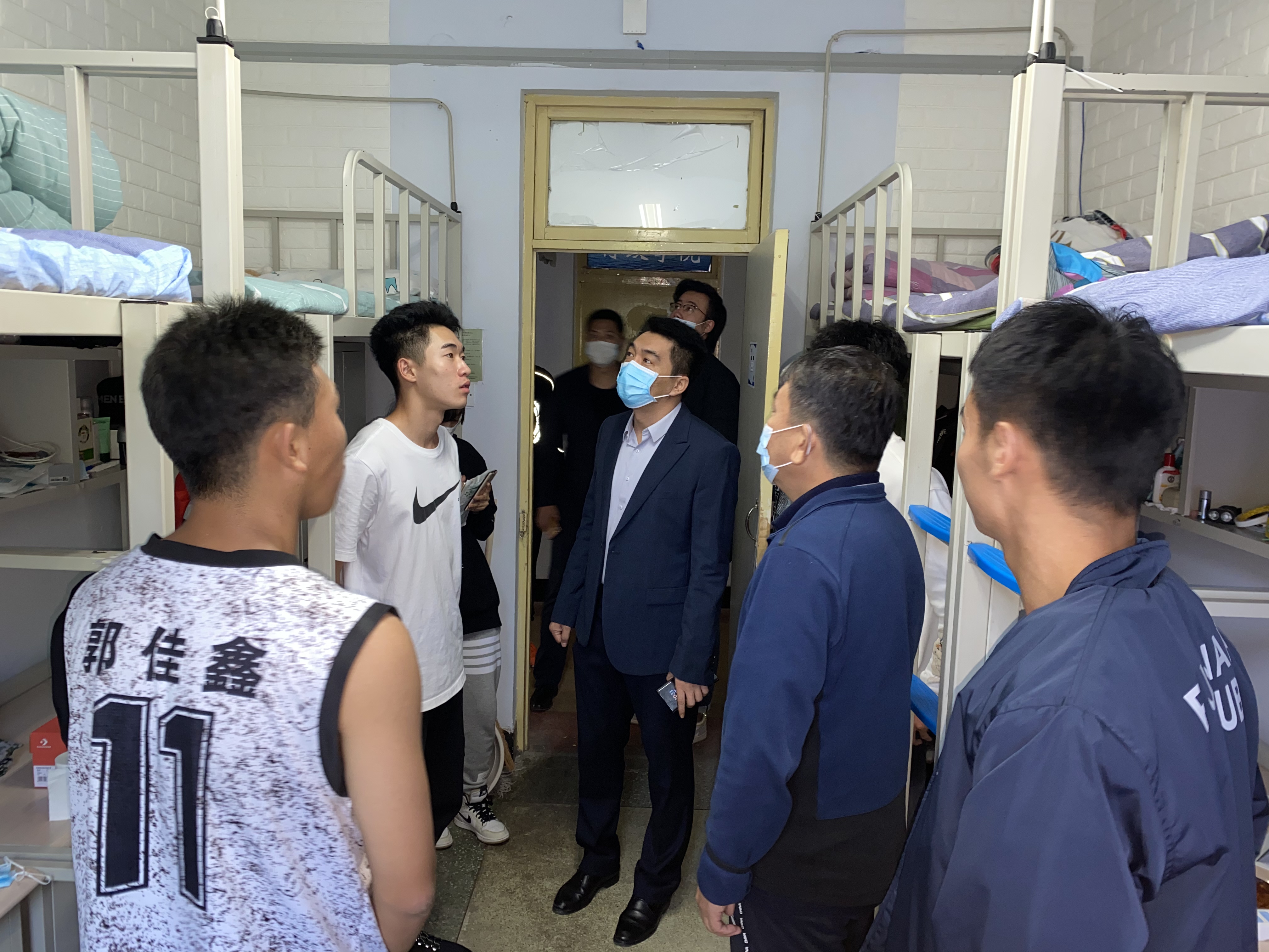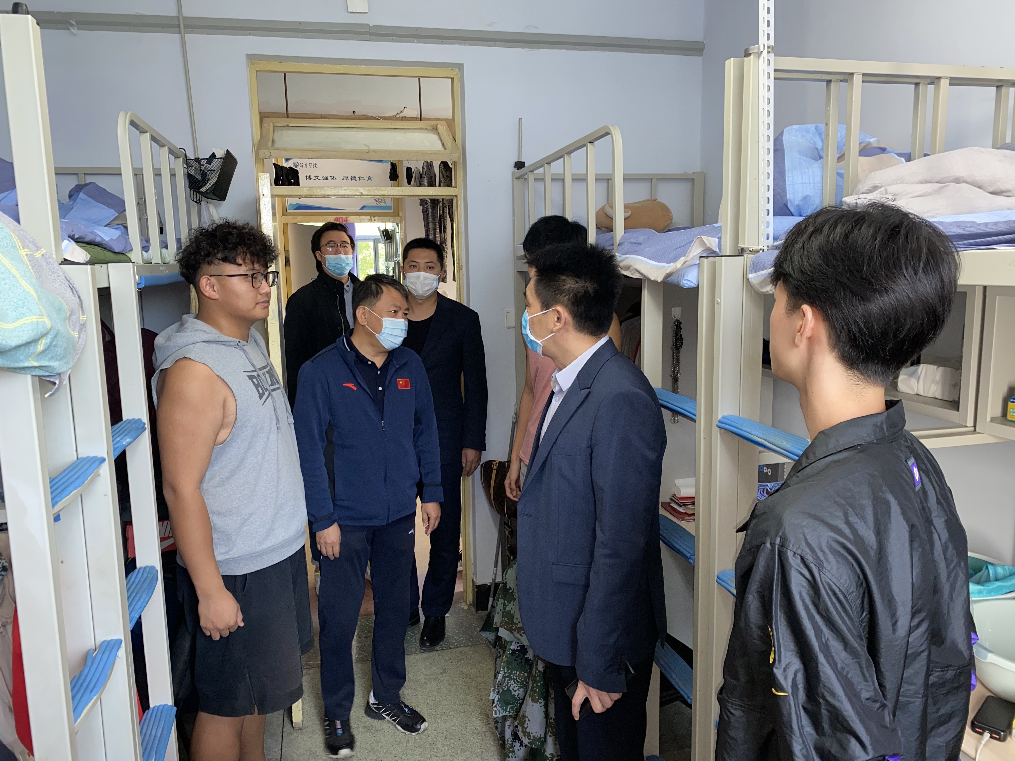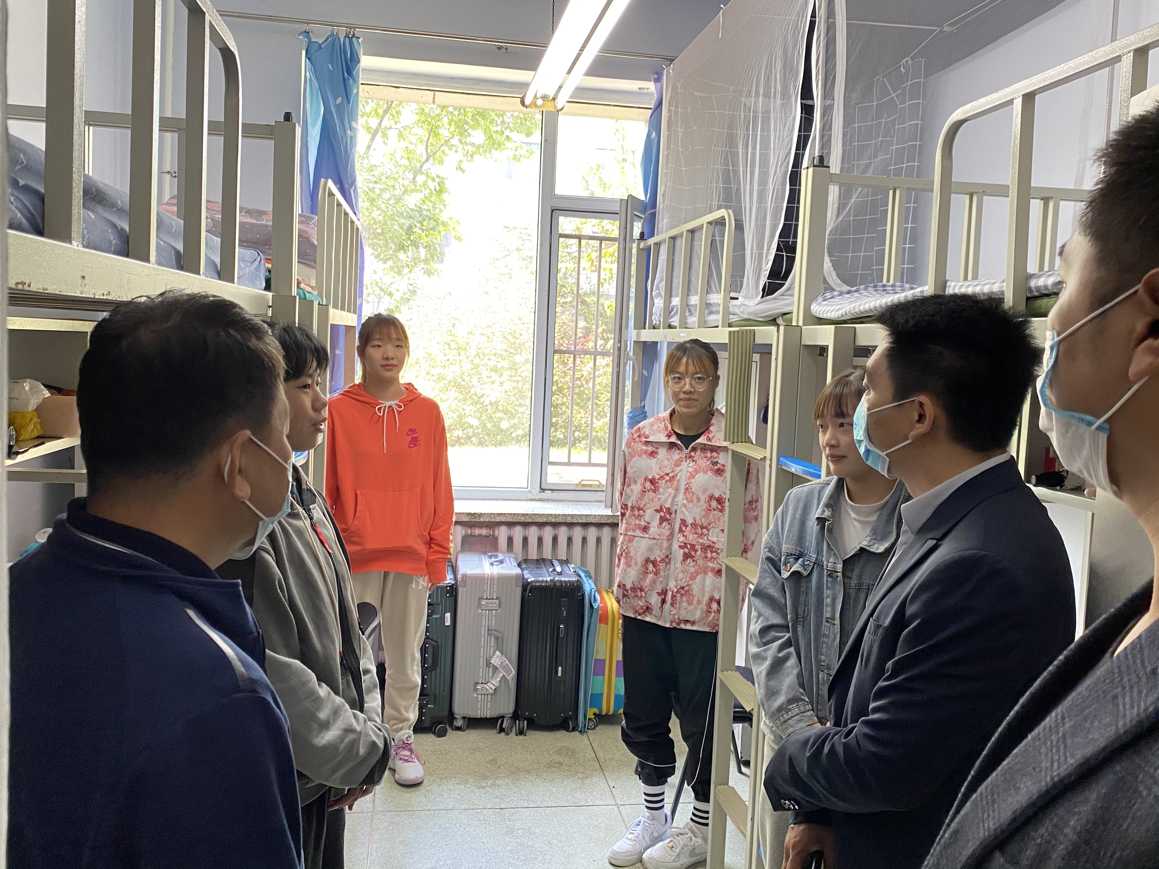 为深入了解2021级新生寝室生活情况,提高新生寝室安全意识,924上午,体育学院领导分别到南苑1公寓和南苑2公寓看望2021级新生。学院党委书记逄锦彩、院长裘鹏、辅导员王祎、宫勖能及部分学生干部参加了本次活动。