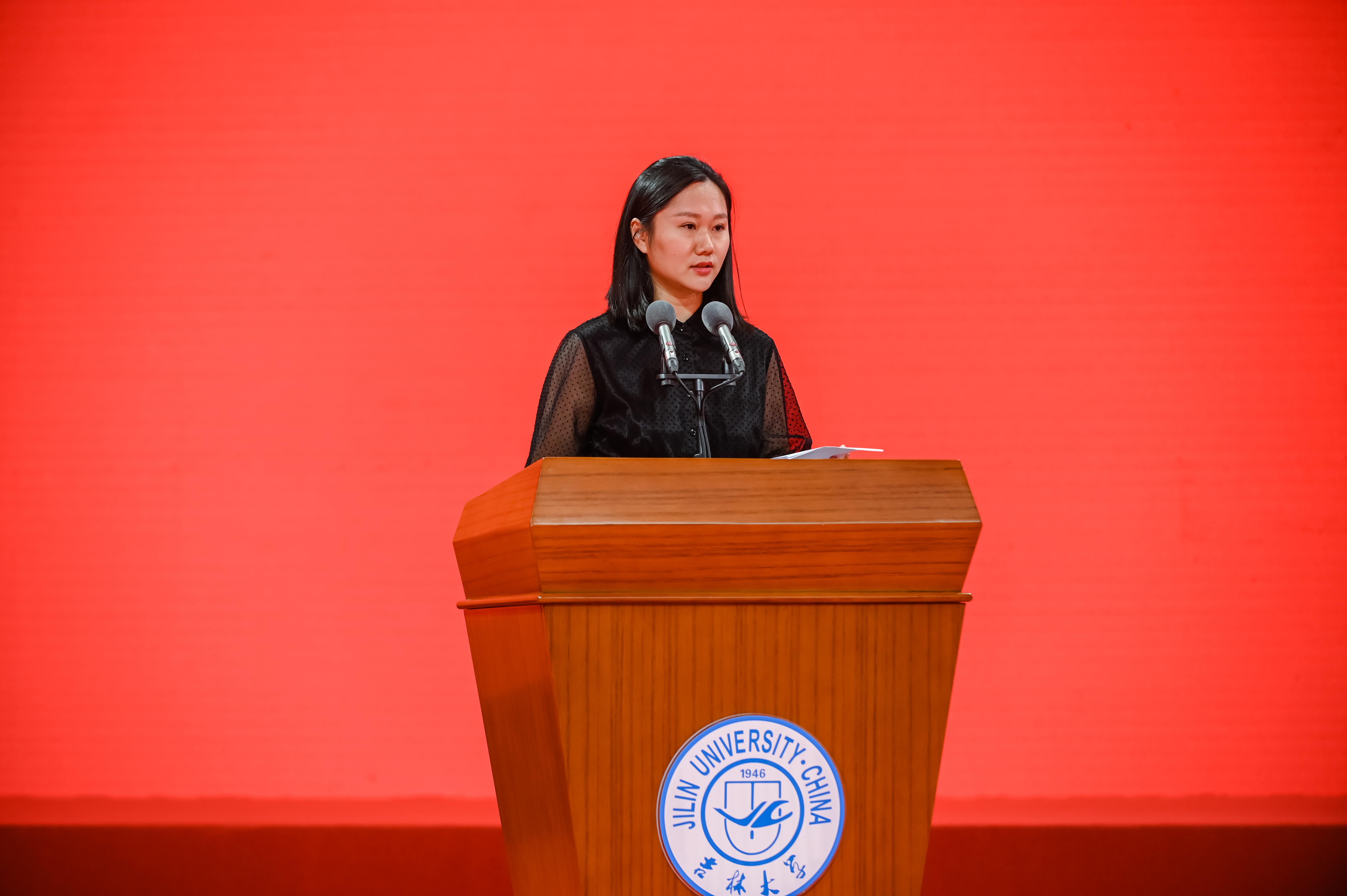优秀毕业本科生杨健、优秀毕业研究生赵婉辰分别代表本科生与研究生发言,感谢母校的培养,立志要在未来的人生道路上发扬吉大体育人的精神,用所学知识与技术理论报效祖国。