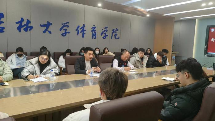 座谈会上, 裘鹏院长带领研究生共同学习回顾二十大报告精神,针对其中关于体育强国、体育医疗、体育外交、体育文化、体育产业以及“教育—人才—科技”等重要内容做了重点解读与论述。裘鹏院长指出,二十大是历史的转折点,二十大报告精神是思想、科学上的重要引领,深入解读并凝练二十大报告体育、教育相关内容,紧跟国家政策、聚焦相关领域,对研究生未来学术科研、毕业论文、就业择业等方面有较大助益 。此外,裘院长提出,8x8x