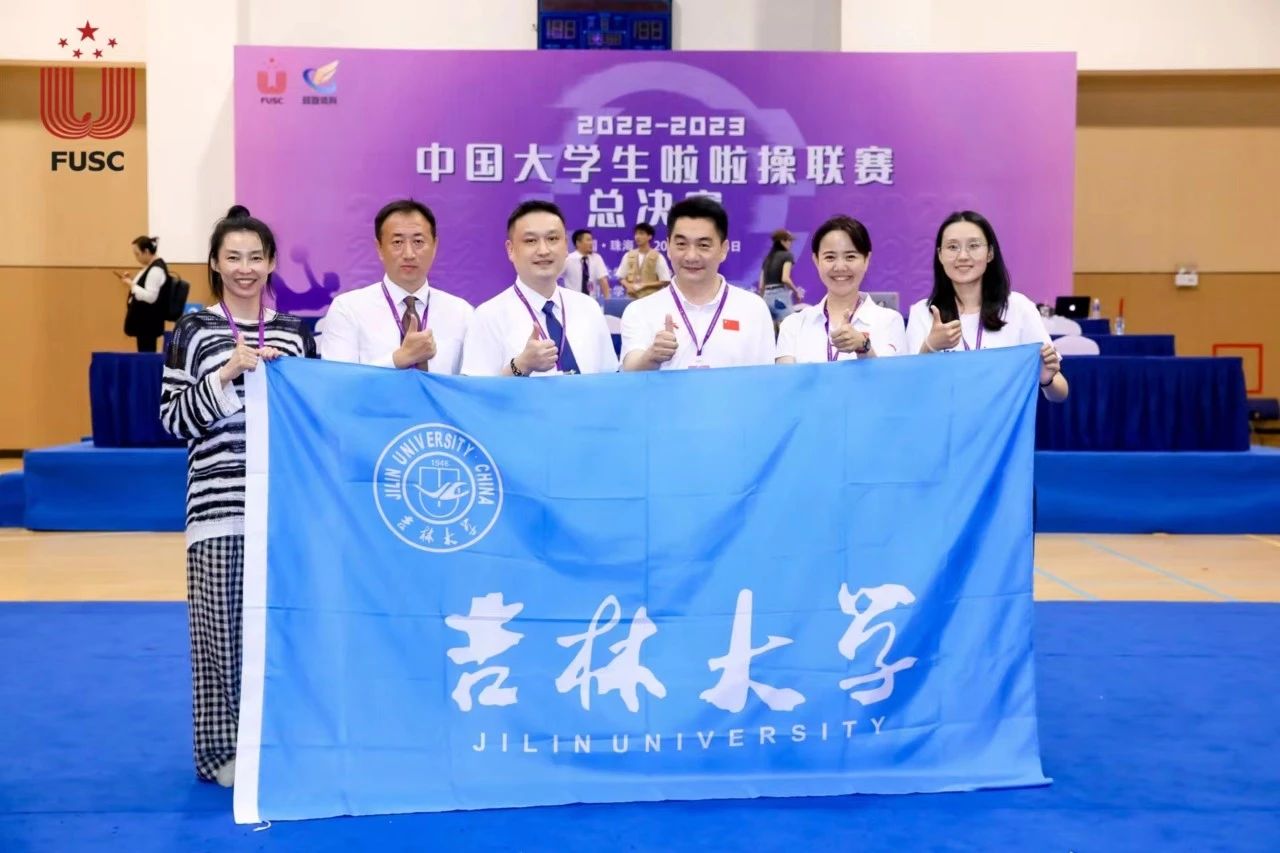 2022-2023年中国大学生啦啦操联赛总决赛在广东珠海顺利举办。中国大学生体育协会健美操与艺术体操分会常务副秘书长黄育,中国大学生体育协会健美操与艺术体操分会常务副秘书长邱建钢,8x8x