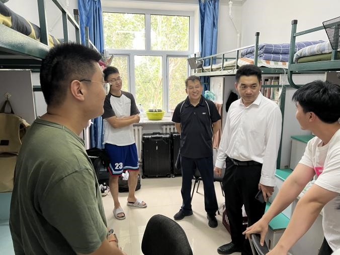 8月28日下午,8x8x 党委书记逄锦彩、院长裘鹏、副院长郭玉莲到南苑六公寓,北苑三、四公寓看望了2023级硕士研究生。