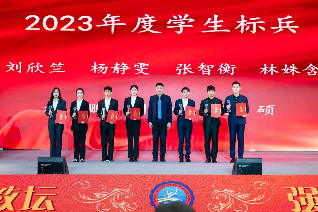 张亮为2023年度学生标兵颁发奖杯及证书。