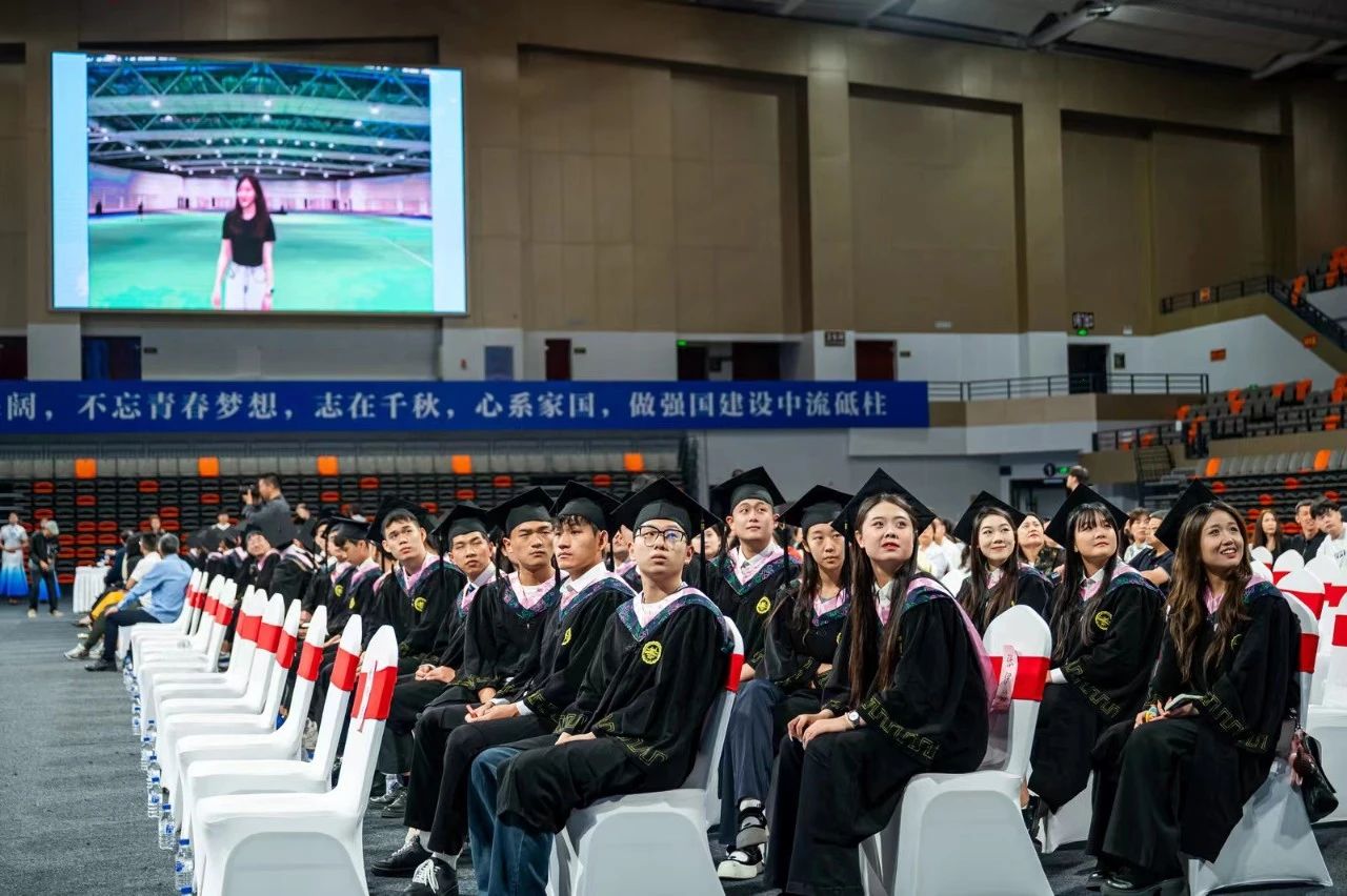 裘鹏院长以“坚守体育价值,不负时代重托”为题寄语全体毕业生。首先,他代表学院向全体毕业生表达了最热烈的祝贺,向全体教职工表达了真挚的感谢,向学生家长表达了崇高的敬意。接下来,他与毕业生分享体育的“自目的性”价值,“界限”价值,“自由”价值,“低效挑战”价值,“公平”价值,“不确定性”价值,“学习”价值,“卓越”价值,“共同体”价值,“美”的价值等“体育的十大内在价值”。他指出“体育的十大内在价值”是对体育的哲学思考,也是同学们未来人生道路上探索的方向,希望同学们能够从体育中汲取力量和智慧,在生活中实践这些宝贵的价值观,成就更加美好的人生。接下来,他用“奥运三问”的故事激励同学们,自觉肩负强国有我的历史使命,为全面建成社会主义现代化体育强国的宏伟目标努力奋斗。最后,他祝福毕业生“不以山海为远,初心如磐;不以风雨为惧,挺膺担当;不以日月为限,再谱华章。”