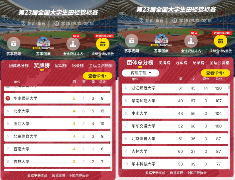 8月10日至15日,第23届全国大学生田径锦标赛在湖北黄石奥林匹克体育中心盛大举行。这场由中国学生体育联合会、中国田径协会和黄石市人民政府共同主办的顶级赛事,吸引了全国490所高校的5300余名师生参与,在161个项目中展开激烈角逐,参赛规模创下历史新高。作为国内高校田径领域的“奥林匹克”,赛事不仅是对大学生体能与技术的检阅,更是各高校体育教育成果的集中展示。