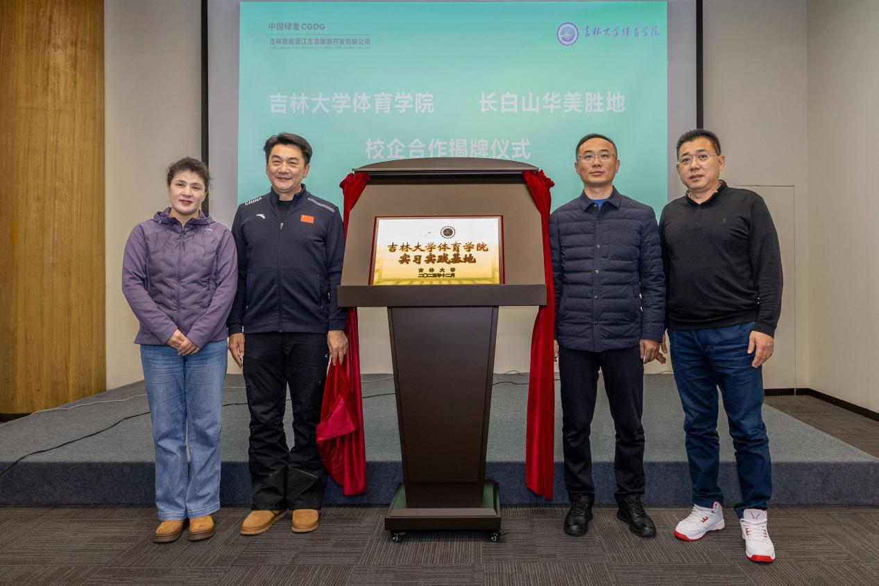 院长裘鹏、党委书记黄蕾及学院相关领导与长白山华美胜地总经理、党委副书记陈文明、长白山华美胜地副总经理、长白山度假酒店总经理唐洪翼等企业代表共同出席仪式,见证这一助力体育人才培养提质增效的重要时刻。