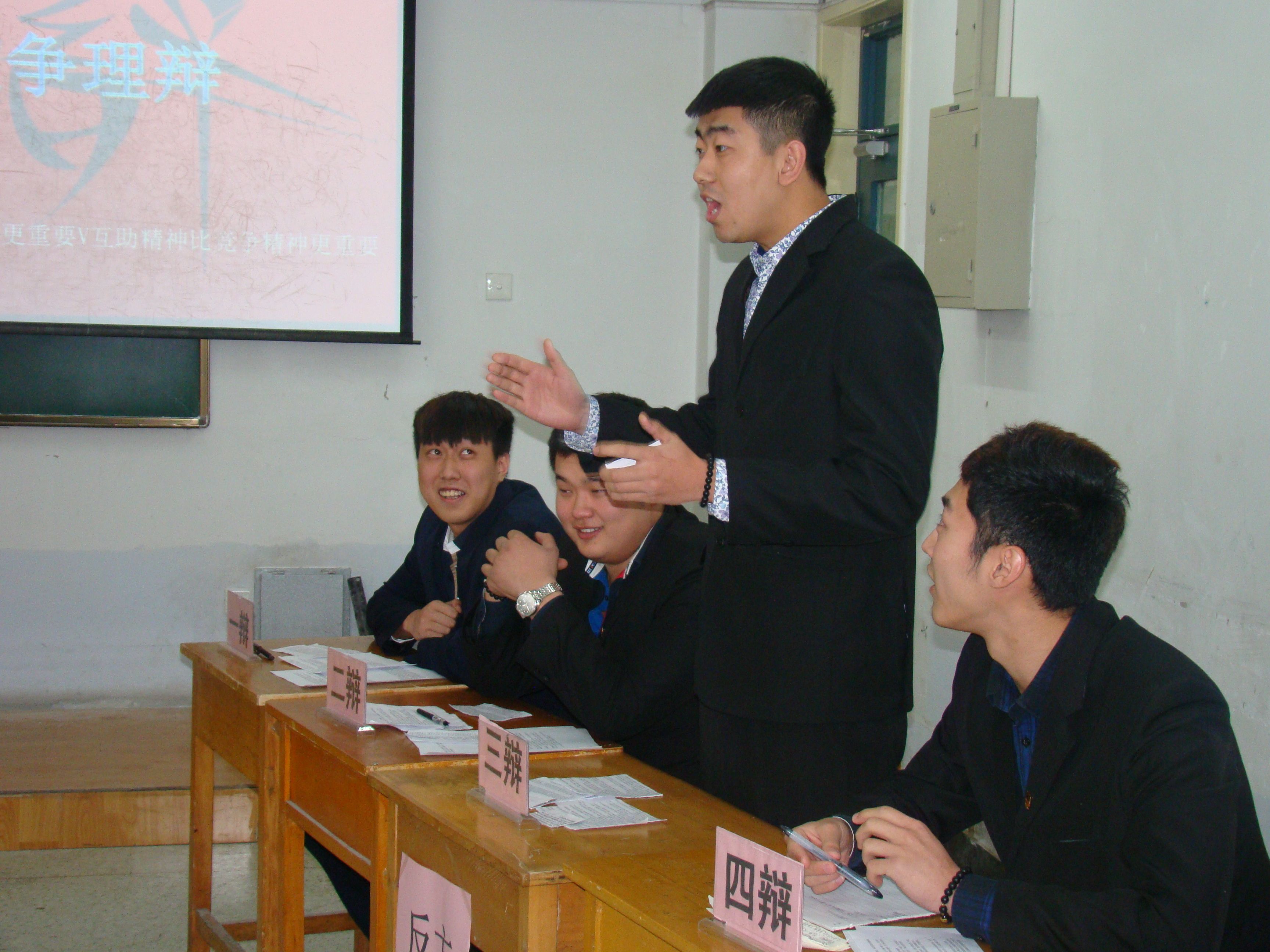 围绕“竞争精神与互助精神哪个更重要”为辩题,正反双方展开了激烈的辩论。在开篇立论、双方攻辩环节中,正方2013级1班代表队坚守“竞争精神比互助精神更重要,突出更字”的辩题进行猛烈的进攻,反方2012级3班代表队反守为攻,围绕着“互助是竞争的基础”的观点步步为营,场面激烈异常。在自由辩论时间,双方你来我往,正方更是据理力争抓住社会大环境的关键点,将比赛气氛点燃到最高,最后由正方针对反方六点失误及本方观点做了精彩的总结陈述。最终通过评委打分,最后主席宣布,2013级一班代表队获取本届辩论赛的冠军,2012级3班成为亚军。同时一班的四辩于小军成为了本场比赛的最佳辩手。