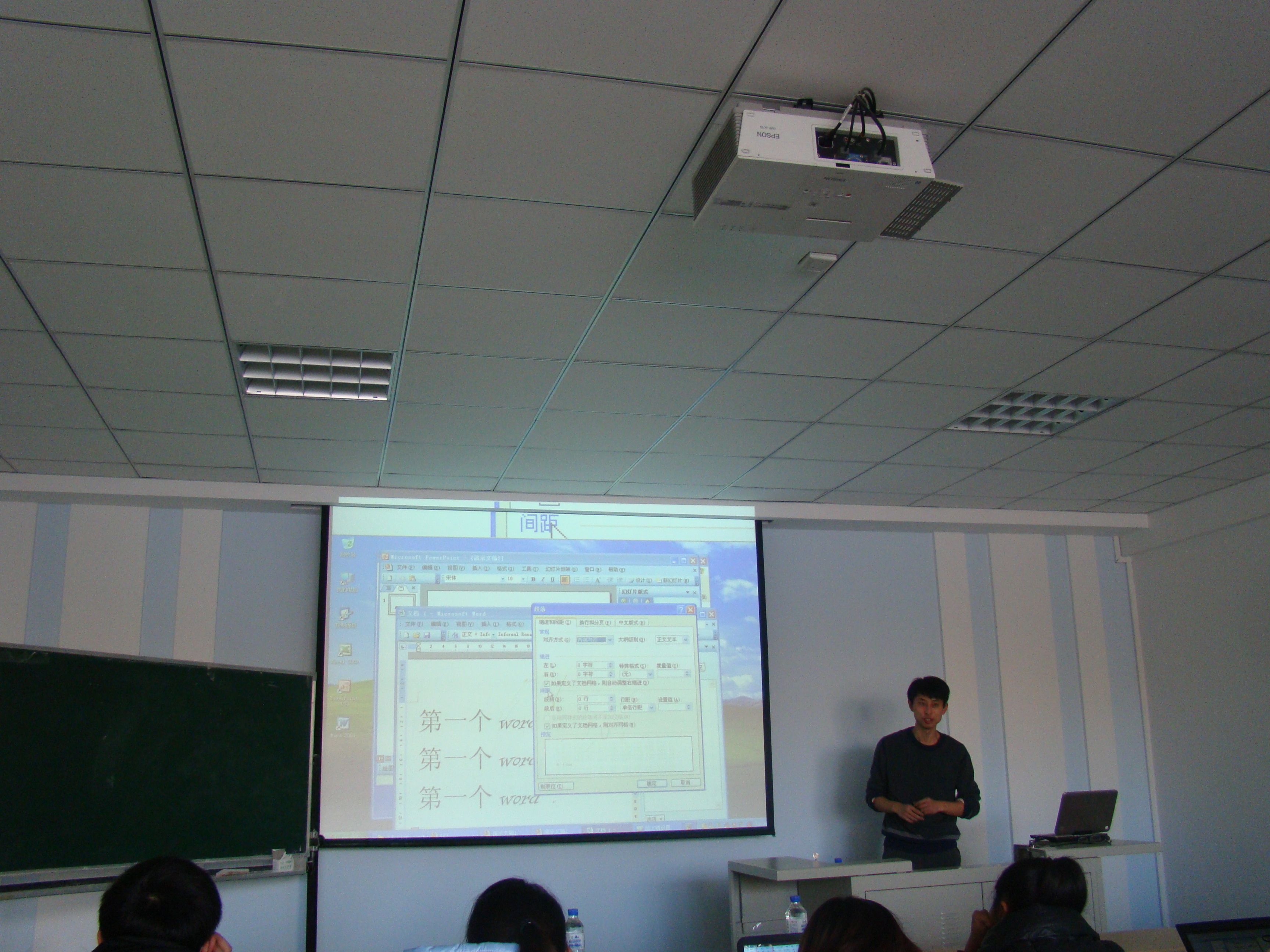 2013年11月22日,由8x8x 团委举办的第一期团校培训在体育馆多媒体教室如期举行。本次活动旨在让同学们了解Microsoft office软件,能够利用2010版office软件做一些简单的文字、表格、PPT处理。我们有幸邀请导员王赫谊担任现场嘉宾,由特邀计算机学院讲师刘向东老师为我们讲解Microsoft office软件。