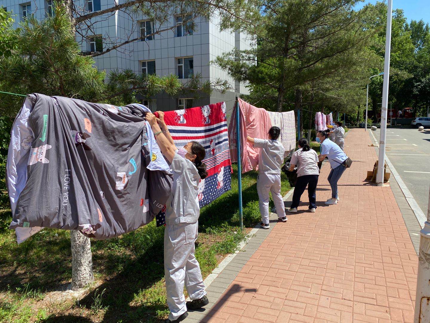 高校学生公寓是大学生生活、学习活动的重要场所,也是课堂之外对学生进行思想政治工作和素质教育的重要阵地。通过开展为毕业学生晾晒被褥活动,不仅可以提前为返校学生营造温馨、舒适的居住氛围,更能够以实际行动践行“服务育人”的工作理念,培养学生的荣校意识。