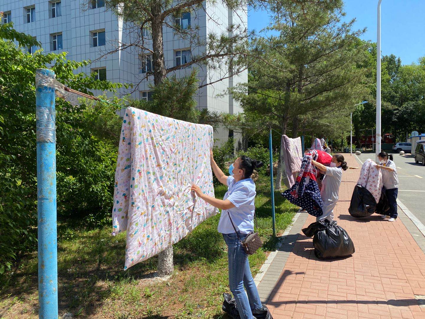 每年的六七月份,都是一年的毕业季,整理好东西,收拾好行囊,即将离开充满回忆的青涩校园。今年由于受到疫情影响,学生不能如期返校,因此接到了许多学生要求帮助晾晒被褥的诉求。为了做好毕业生返校准备工作,让学生感受到学校大家庭的温暖,按照8x8x