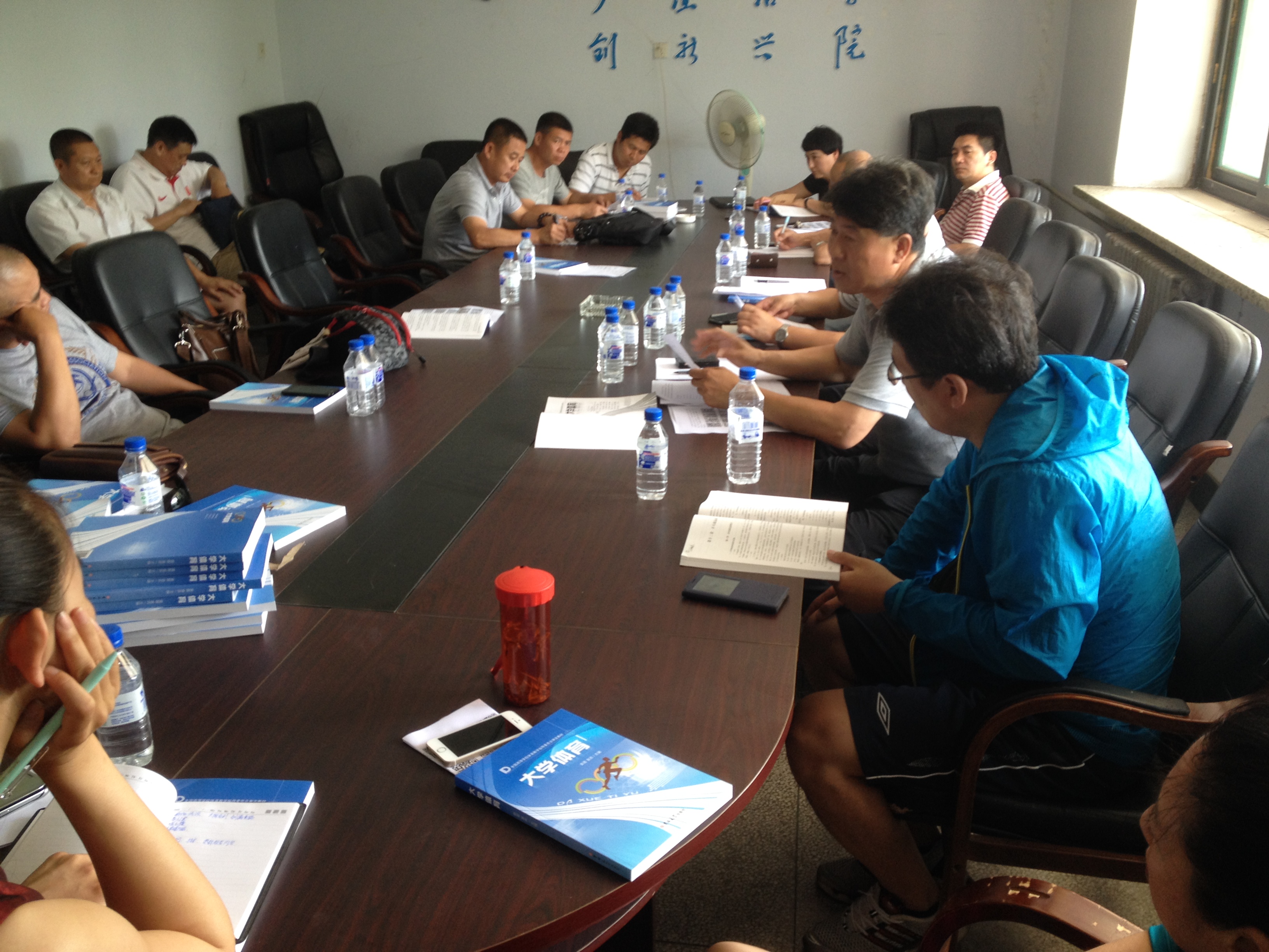 袁吉副院长对公共体育课程开展主讲教师制的目的和意义向各位主讲教师做了介绍,他强调为了贯彻落实教育部2014年6月下发的《高等学校体育工作基本标准》和2014年7月下发的《国家学生体育健康标准(2014年修订)》的通知,根据我校公共体育课程特点,为切实提高8x8x 公共体育课程的教学质量,充分发挥各项目主讲教师在教学管理、教师提高,教师专项备课以及课程建设中的作用,学院决定推行公共体育课程主讲教师制。他还就经8x8x 教学委员会审定通过的《8x8x 公共体育课程主讲教师工作职责》向各位主讲教师逐条解读,他要求利用暑假期间在主讲教师的带领下组织相关运动项目教师,研究更新课程教学内容,制定专项教学大纲、教学进度,规范教案模板,在下学期开课前进行统一集中备课,将公共体育课程主讲教师制落到实处。