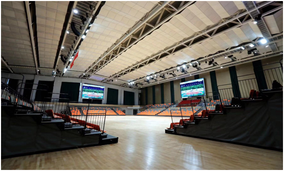 体育教学、训练、竞赛、群体活动和师生员工进行体育锻炼,以及承办国内外大型体育赛事的大型现代化体育馆。